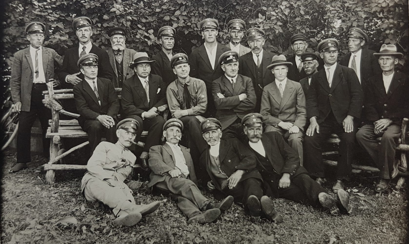 12345Tudulinna valla vabatahtlike tuletõrjeühingu 10 a. sünnipäev 10.10.1937. 1.kassapidaja Harry Pikhof 2.abiesimees Jüri Pärnik 3.kompanii pealik Adolf Vaas 4.esimees Ernst Kütt 5.Kassahoidja Kaarel Saluste |